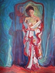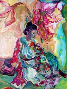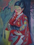 2014een vrouw van italiaanse/japanse herkomst dragt een kimono in een Breitnerachtig scene.
