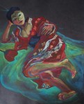 2015Een vrouw in kimono ligt uit te rusten
