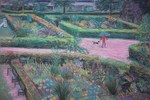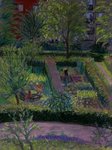 2015In juli bloeiende de courgette planten. De bieten, bonen, divers sla en pastinaak zijn hard aan het groeien. Papavers fleuren de tuinen op. De katten zoeken een schaduwrijk plek op een heet dag. Iemand is aan het spitten.