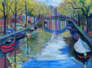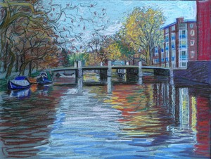 2019Een middag in november en deze mooie uitzicht vanaf een boot in de Singelgracht getekend.